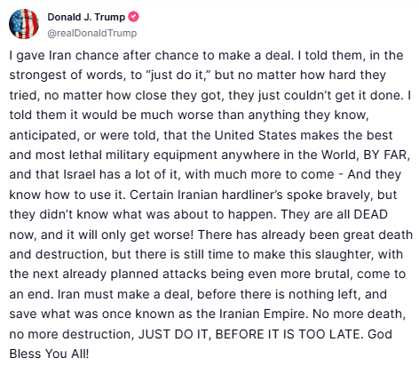Trump invokes Fire’s most shadowed form: not the warmth of courage, but the fury of dominance. “They are all DEAD now” isn’t strategic. It’s theatrical incineration. Fire here is weaponized will—retribution with fuel tanks.