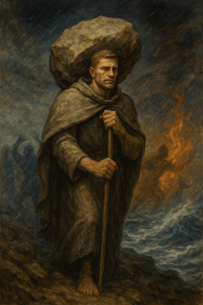 The piece contrasts the cultural dominance of Fire and Water in their undisciplined forms — impulse and overexposure — with the silence, strength, and sacred weight of Earth. It acknowledges the loss of stoic discipline in generations raised on unfiltered catharsis and elevates the image of the Stonebearer as a mythic archetype of quiet fortitude.